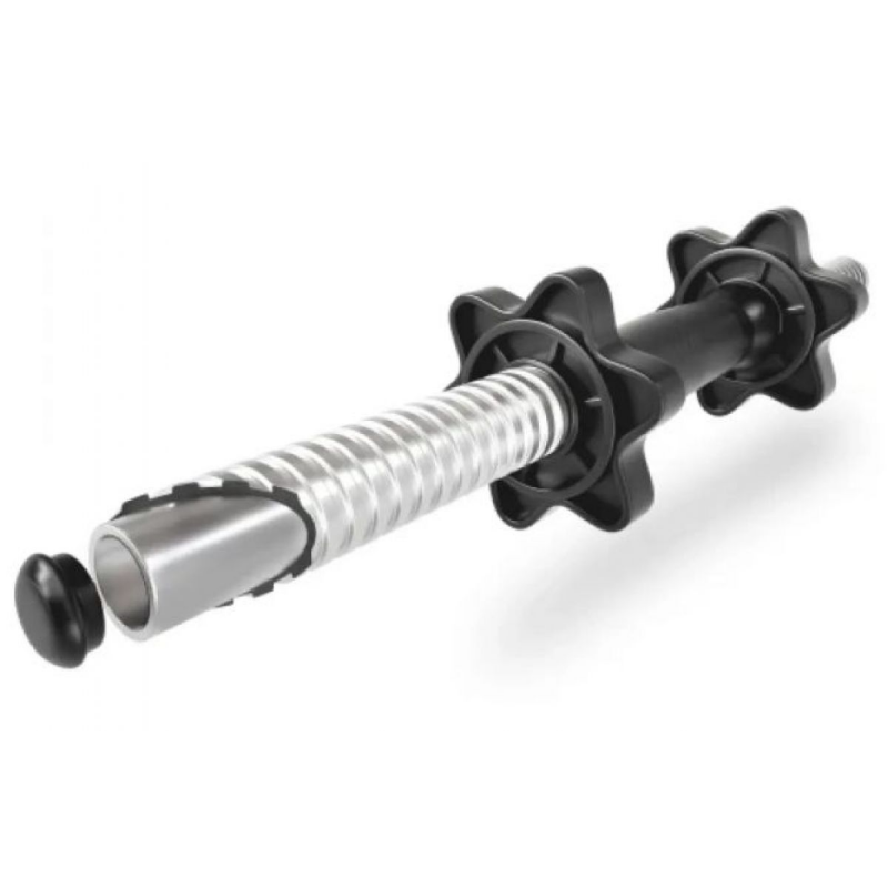 Параметри гантельного грифу: загальна довжина 45 см; довжина між блоками 10 см; довжина частини для дисків 2 × 16 см; вага 0,75 кг; діаметр 30 мм; максимальне навантаження 60 кг.