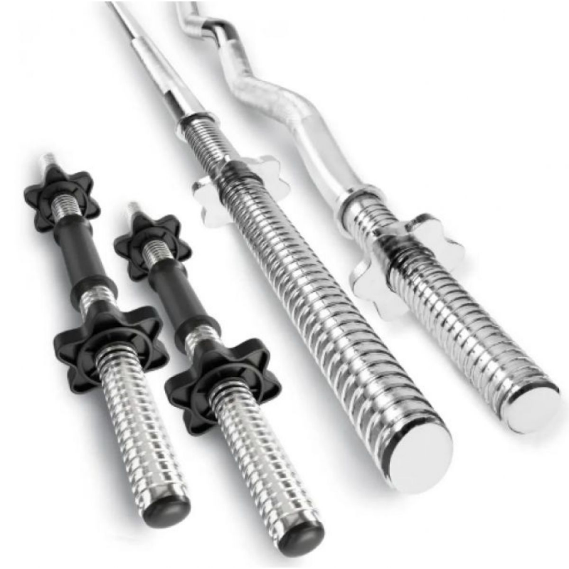 Секрет набору — у правильному поєднанні грифів, дисків та функціональної лави. Прямий гриф чудово підходить для жиму лежачи, станової тяги, нахилів та випадів, допомагаючи впевнено опрацьовувати грудні м'язи та руки. W-подібний гриф помітно комфортніший для біцепса та трицепса: вигнута форма допомагає тримати кисті у природному положенні та знижує навантаження на зап'ястя. А гантельні грифи дають свободу амплітуди — можна точніше «дотискати» потрібні зони, розвивати баланс та координацію.