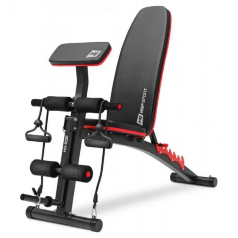 Тренувальна лава HS-1035 — багатофункціональна модель домашнього використання. Вона оснащена партою Скотта, фіксаторами для ніг та еспандерами (встановлюються по обидва боки основи), що розширює діапазон вправ. Регулювання спинки допомагає змінювати акценти: від тренування преса та грудей до більш "точної". роботи на руки та плечовий пояс. І важливий плюс — лава не займає занадто багато місця, тому чудово вписується навіть у звичайну квартиру.