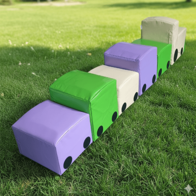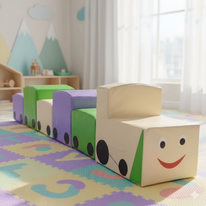 Набір "Паровозик" KIDIGO™ складається з 6 різнокольорових фігур. Часто використовуються як м'які пуфи.