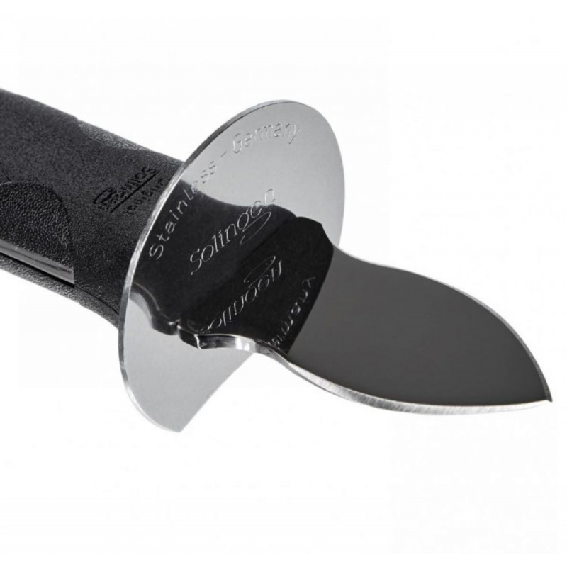 Ніж оснащений міцним і жорстким мечем, який легко проникає в замкову щілину раковини, не пошкоджуючи м'ясо устриці. Ергономічна рукоять із чорного матеріалу забезпечує надійний хват і запобігає ковзанню, навіть якщо руки вологі.