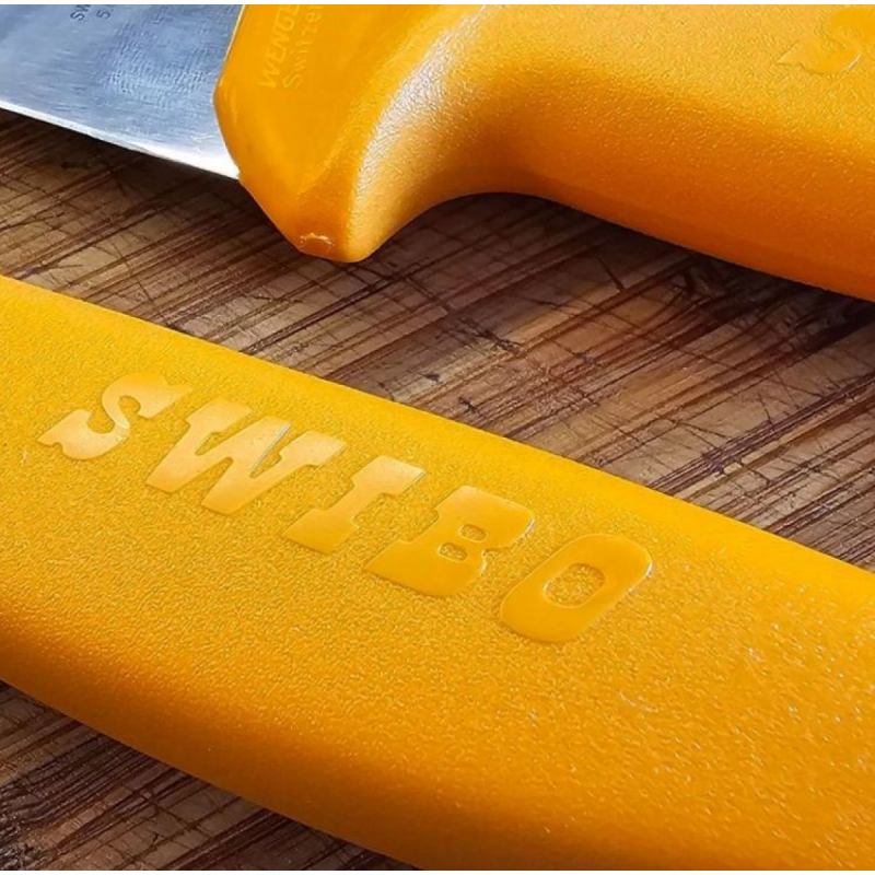 Ніж кухонний Victorinox Swibo, Butcher, помаранчевий, 26 см арт.5.8431.26 — це професійний висококласний ніж для роботи з м'ясом. Модель відноситься до легендарної серії Swibo, яка продовжує традиції серії Wenger Swibo та адаптована до потреб сучасних професійних кухонь. Ергономічна конструкція, міцні матеріали та безпечна форма роблять ніж зручним для щоденного інтенсивного використання.