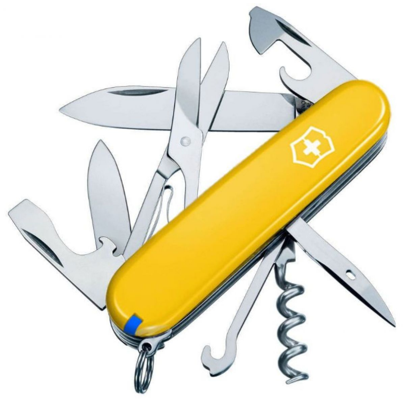 Ніж Victorinox Swiss Army Climber Ukraine жовто-синій арт.1.3703.8.2 – купіть надійний швейцарський ніж у Sport90-60-90.com