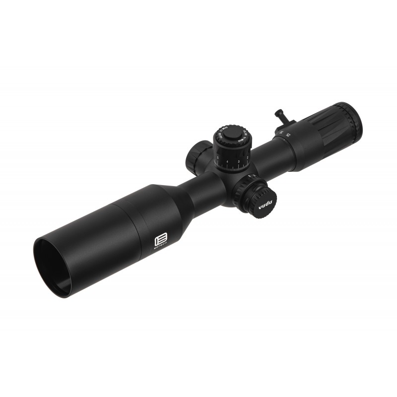 Vudu 5-25X50 у першій фокальній площині ідеально підходить для гвинтівок з короткою платформою. Маючи довжину 285 мм, 5-25X є одним із найкоротших гвинтівкових прицілів з першою фокальною площиною на ринку. Барабанчик включає систему блокування EZ Chek Zero Stop від EOTECH.