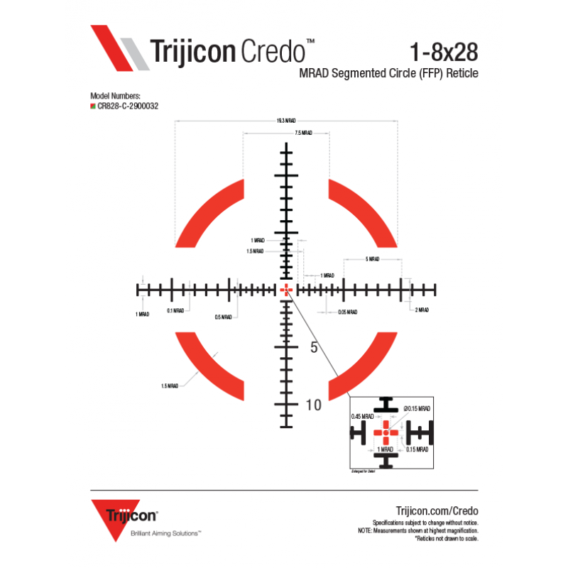 Швидке ураження цілі і точність на великих відстанях за допомогою одного і того ж прицілу - Trijicon Credo® 1-8x28. Фаворит серед професійних стрільців і тактичних користувачів, це наш найкращий регульований приціл малої кратності. Credo 1-8x28 дає вам широкосмугове антиблікове скло з багатошаровим покриттям, трубку діаметром 34 мм і лінзу об'єктива 28 мм для поліпшення вихідної зіниці і характеристик при слабкому освітленні. Подвійна сітка MRAD Segmented Circle з червоною / зеленою підсвіткою призначена для CQB і дистанційної стрільби в будь-яких умовах. Стріляйте з упевненістю.