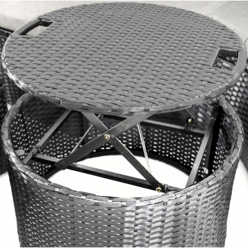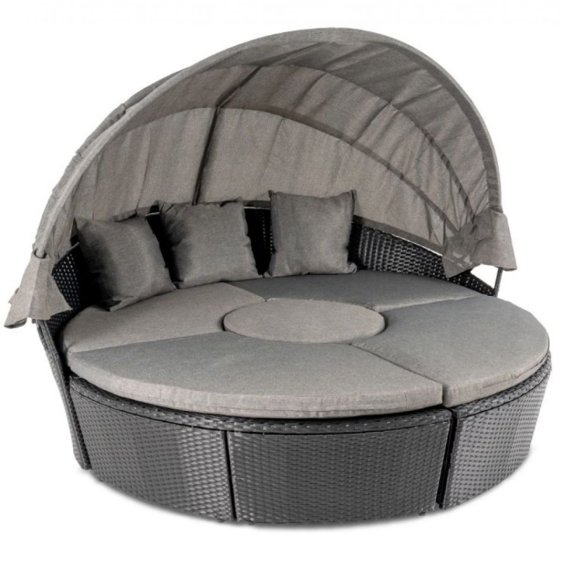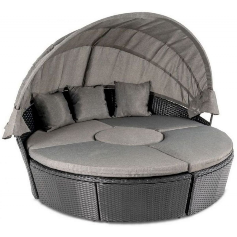 У складеному вигляді комплект перетворюється на ефектне королівське ложе, яке стане справжньою окрасою ділянки. Підйомна стільниця дозволяє швидко організувати зону для напоїв або закусок.