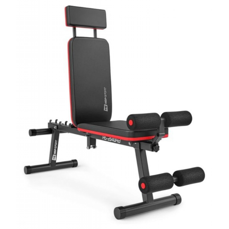 Лава тренувальна Hop-Sport HS-2040 HB відмінно підходить для жиму гантелей та штанги, вправ на прес, а також для опрацювання спини. Підголовник, що регулюється, забезпечує додаткову підтримку шиї та голови, підвищуючи комфорт при виконанні вправ у похилих положеннях.