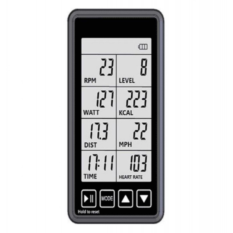 Регулювання сидіння й керма у двох площинах забезпечує правильну посадку для користувачів будь-якого зросту. Дисплей розміром 13 см відображає усі важливі показники: час, дистанцію, оберти, пульс та інші дані для точного контролю ефективності тренування.