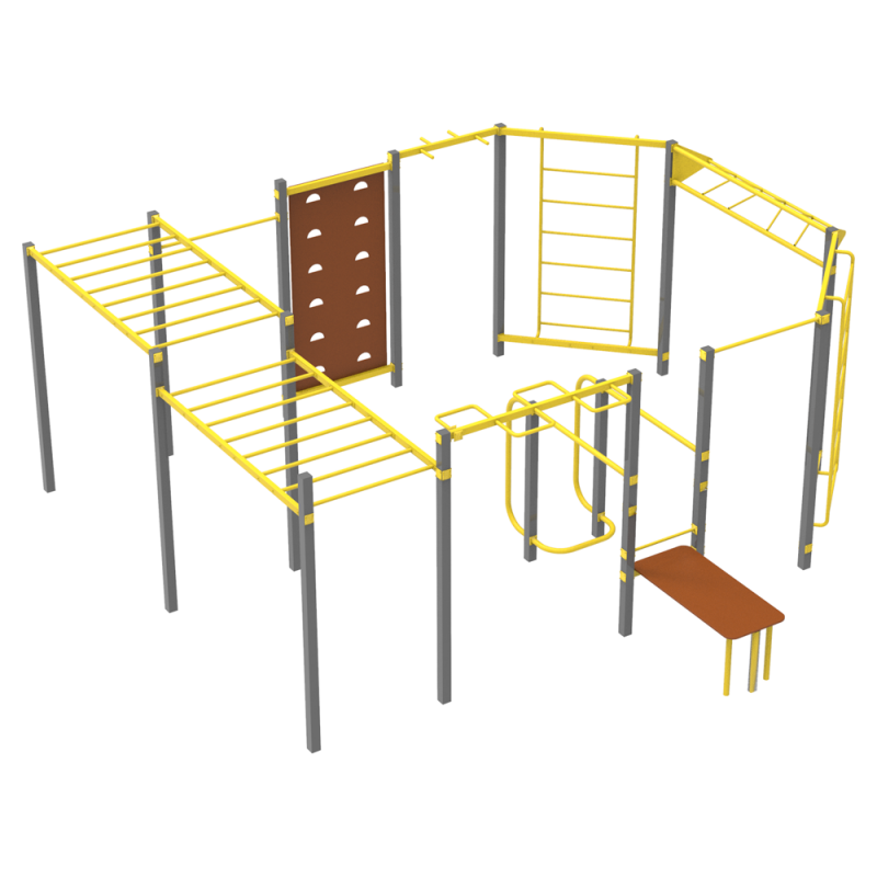 Комплекс для Воркауту допомагає розвивати спритність, силу хвата, опрацьовувати усі групи м'язів. Оптимальне поєднання різних елементів забезпечує ефективне фізичне навантаження.
