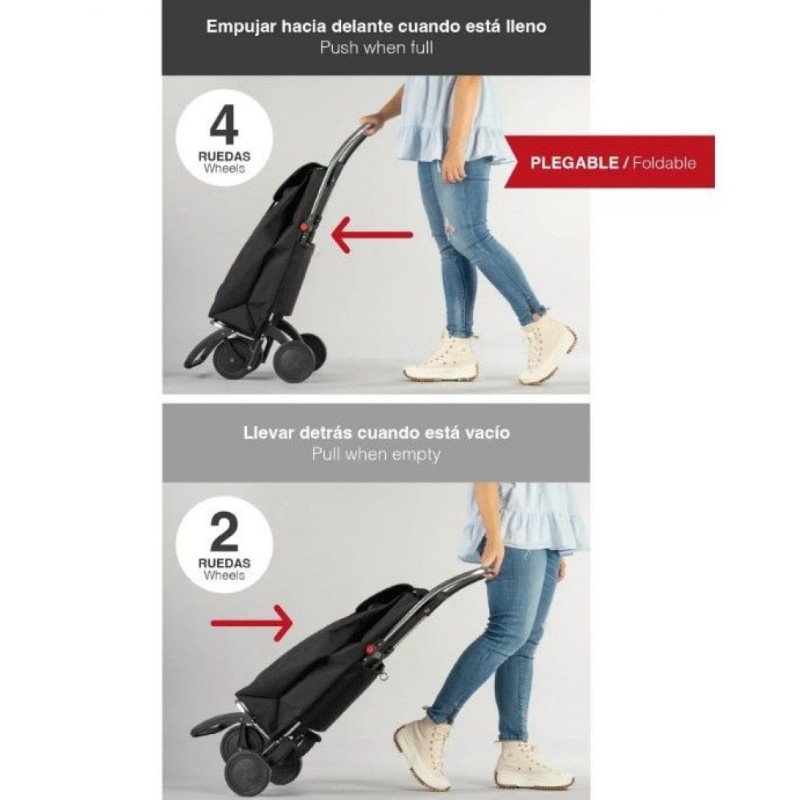 Rolser I-Max Termo Zen 4L поєднує продуманий дизайн і високу практичність. Модель оснащена складаною рамою 4L, що дозволяє використовувати візок як у двоколісному, так і у чотириколісному режимі. Це зручно для різних умов — вузьких проходів у магазині чи тривалих прогулянок із повними покупками. Ручка з пластиковим покриттям забезпечує комфорт навіть у холодну пору року, а міцна тканина Polyester 400D PVC надійно захищає вміст від вологи, дощу та бруду.