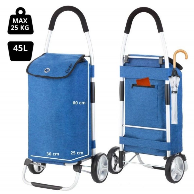 Сумка-візок ShoppingCruiser Foldable Blue (650061) — це сучасне рішення для тих, хто цінує комфорт, функціональність і надійність. Модель поєднує легкість, місткість і продуманий дизайн, що робить її чудовим вибором для щоденних покупок, поїздок на ринок, подорожей або пікніків. Завдяки міцній алюмінієвій рамі та водонепроникному нейлону сумка витримує інтенсивне використання та підходить для будь-яких погодних умов.