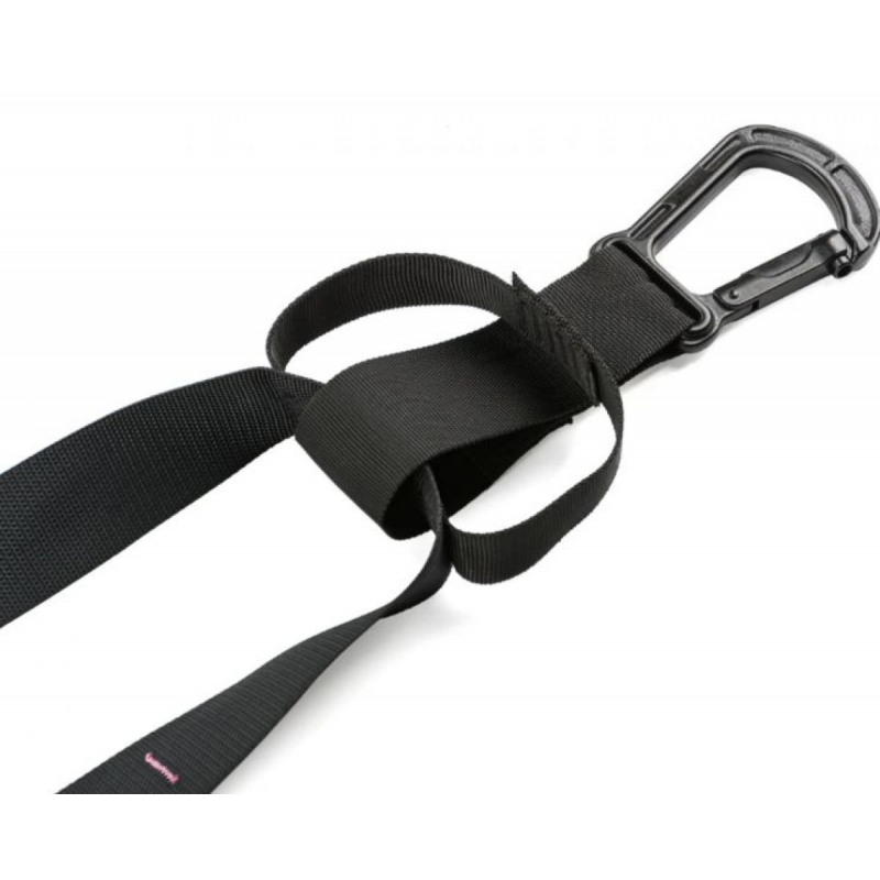 Петлі виготовлені із міцної та стійкої до розтягування стрічки, яка витримує інтенсивні тренування. Ручки виконані з пінопласту, забезпечуючи надійне захоплення без ковзання. Додатковий ремінь-подовжувач дозволяє варіювати висоту установки, розширюючи можливості вправ. Для довговічності виробу рекомендується зберігати петлі в сухому місці та періодично перевіряти стан карабінів та ременів.