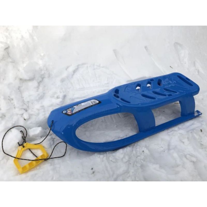 - Особливості конструкції: класичні пластикові санки з металевими полозами для легкого ковзання