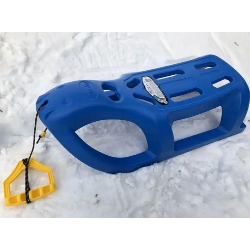Санки виготовлені з морозостійкого пластику, який зберігає свої властивості навіть за температури до -28°С. Корпус міцний і стійкий до ударів, а металеві полозья забезпечують відмінне ковзання по снігу та льоду. Зручна пластикова ручка на кольоровій мотузці робить керування санчатами легким та безпечним. Вага санок всього 2,2 кг, що полегшує їхнє транспортування та зберігання.