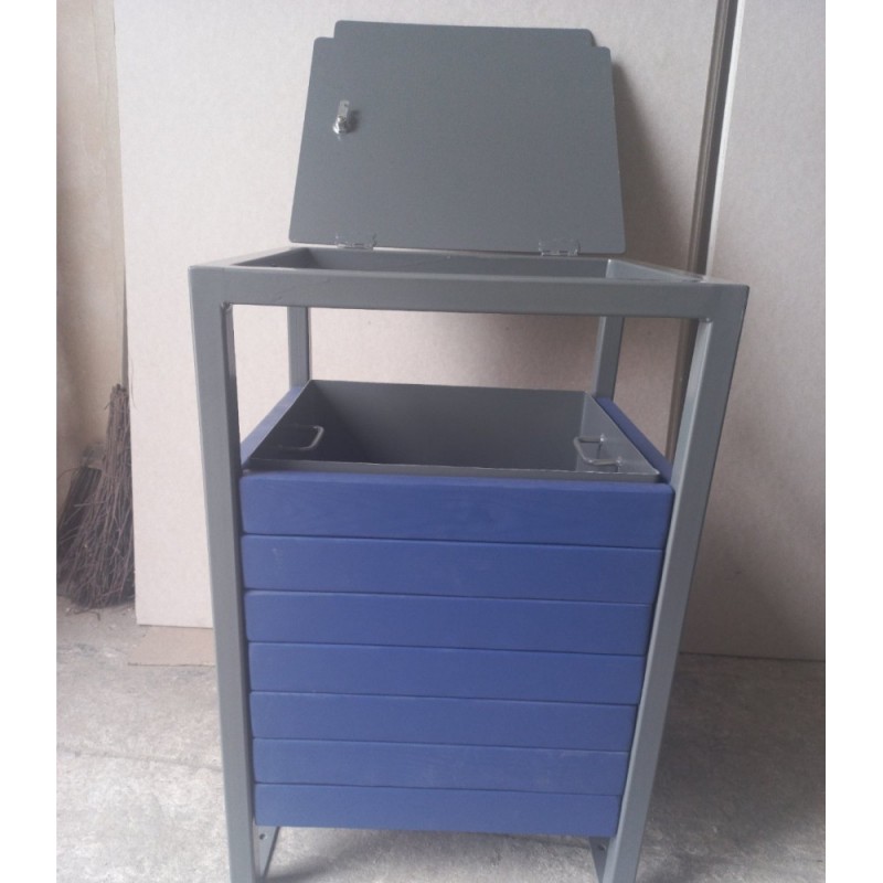 Урна для вулиці з металу з обробкою дерев'яними панелями