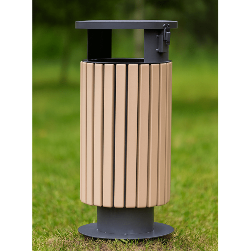 Урна для вулиці з металу з обробкою дерев'яними панелями
